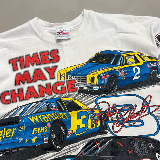 Large 1996 Distressed Dale Earnhardt Times May Change AOP T-shirt